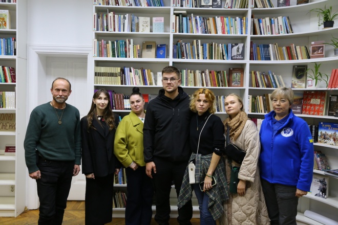 Коротка вулиця Устияновича у Львові. Будинок №4, важкі дерев’яні двері з домофоном. Сірий під’їзд веде до затишного простору бібліотеки URBAN. Білі стіни, стелажі, повні книжок, велике світло й барвисті м’які стільці. На широких підвіконнях — вазони й картонні плакати з протестів: «Волю полоненим», «Не мовчи — полон вбиває», «Free Mariupol Defenders».